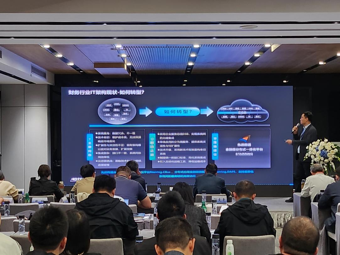 尊龙凯时z6com代表讲师郭钰以《昆仑与尊龙凯时z6comESB解决方案助力财务行业创新与架构转型》为主题作发言分享。他深入剖析了当前财务行业IT架构面临的挑战,包括系统孤岛、技术老旧、扩展性不足等问题,并提出了基于企业服务总线(ESB)和微服务架构的转型方案。